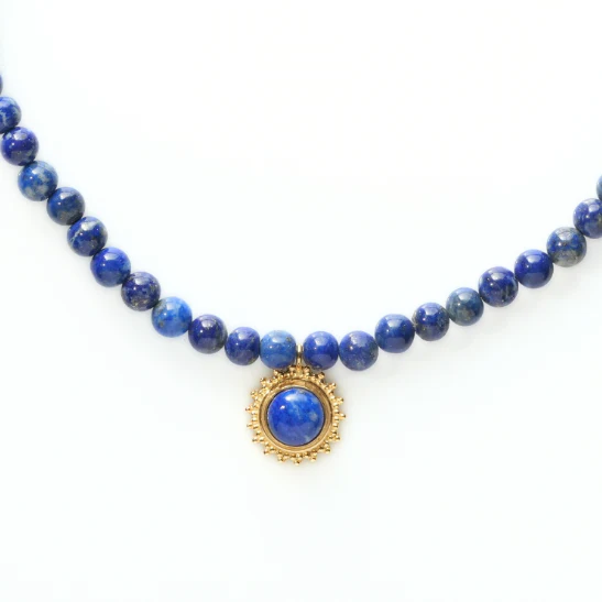 The Ajna Necklace is a powerful and elegant piece, crafted from high-grade, ethically sourced Lapis Lazuli, known for its ability to activate the throat chakra and support the wearer in speaking their truth. The pendant and chain are made from anti-tarnish 22k gold vermeil, offering both beauty and lasting durability.