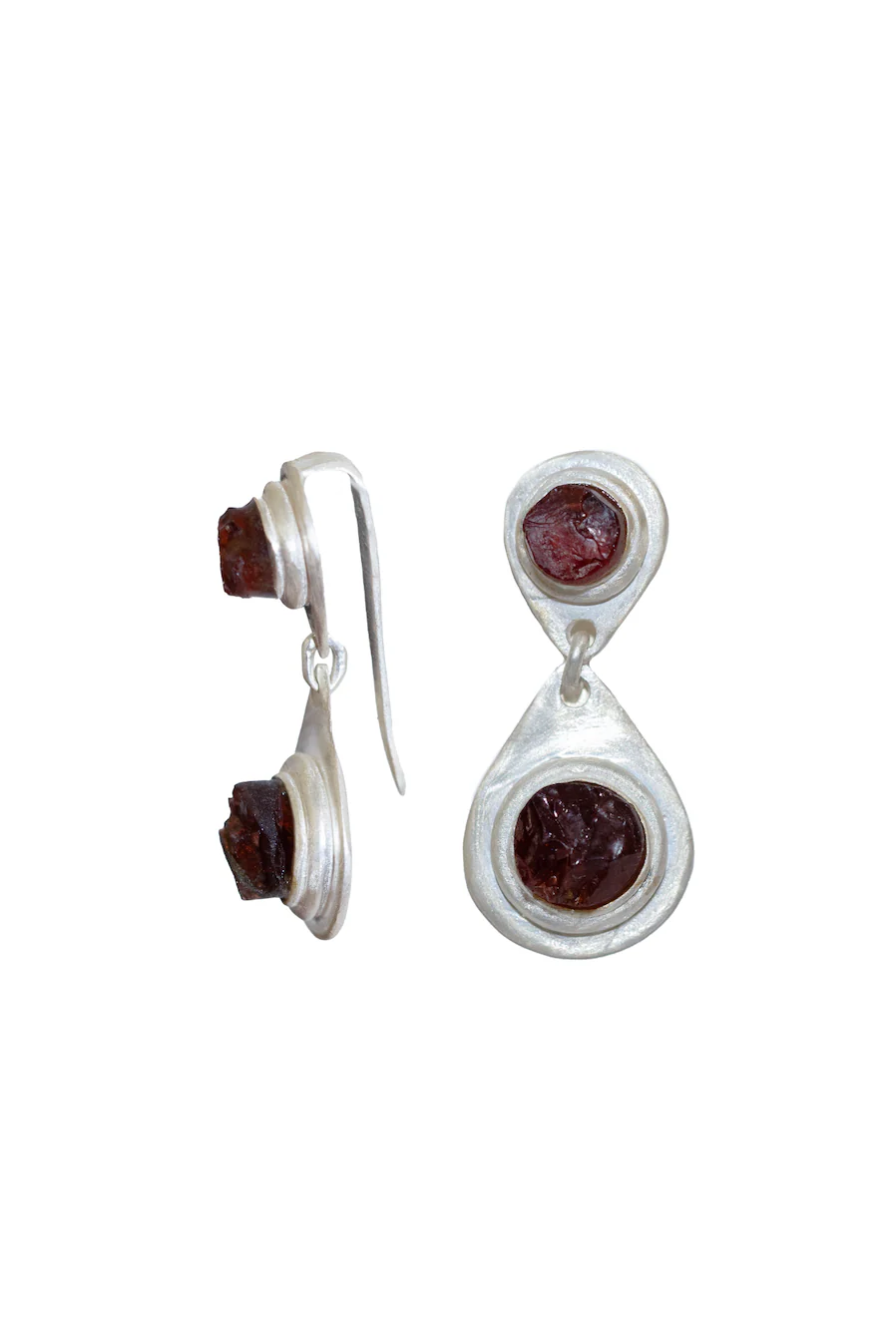 Radiating quiet power and sacred strength, the Ahura Mazda Hangers are expertly handcrafted from solid sterling silver with a semi-matte plating. At their center rests raw Garnet, a stone known to heal heartbreak, restore emotional balance, and attract success and prosperity.
