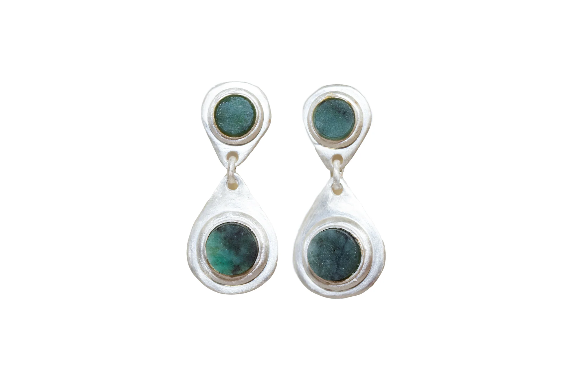 Named after the ancient Persian prophet and philosopher Zarathustra, these earrings embody the wisdom and divine vision of a seer. Handcrafted from solid sterling silver with a semi-matte finish, they are designed for 4mm gauged lobes and inlaid with natural raw Emerald—a stone long revered for clarity, prosperity, and spiritual awakening.